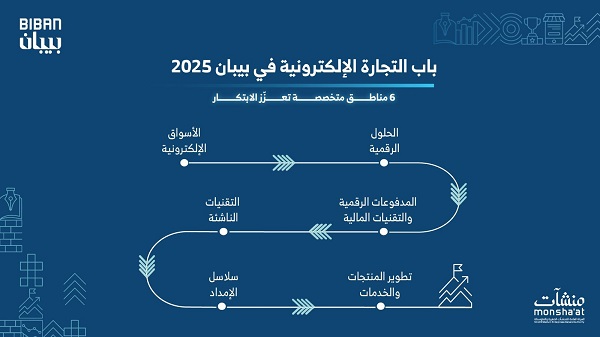 وقد جرى تصميم الباب ليضم ست مناطق متخصصة، تُوفر للزوار تجربة معرفية ومهنية متكاملة، تعكس أحدث التوجهات العالمية في عالم التجارة الإلكترونية، وتُسهم في تطوير منظومة رقمية أكثر كفاءة واستدامة.